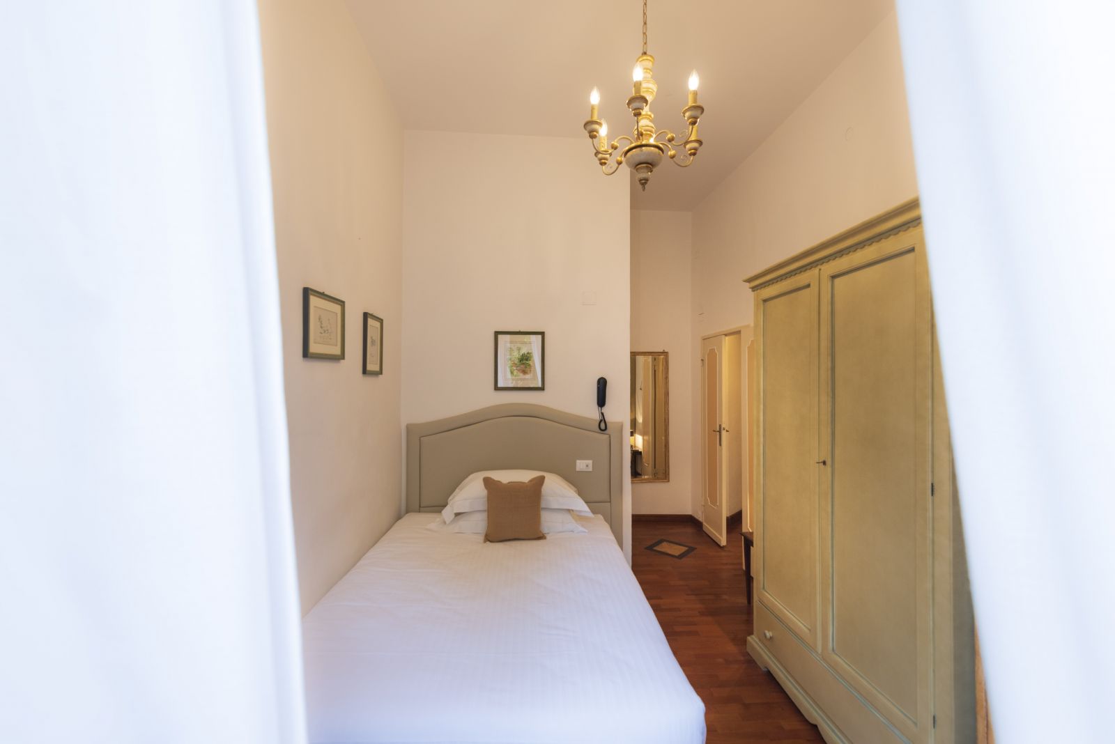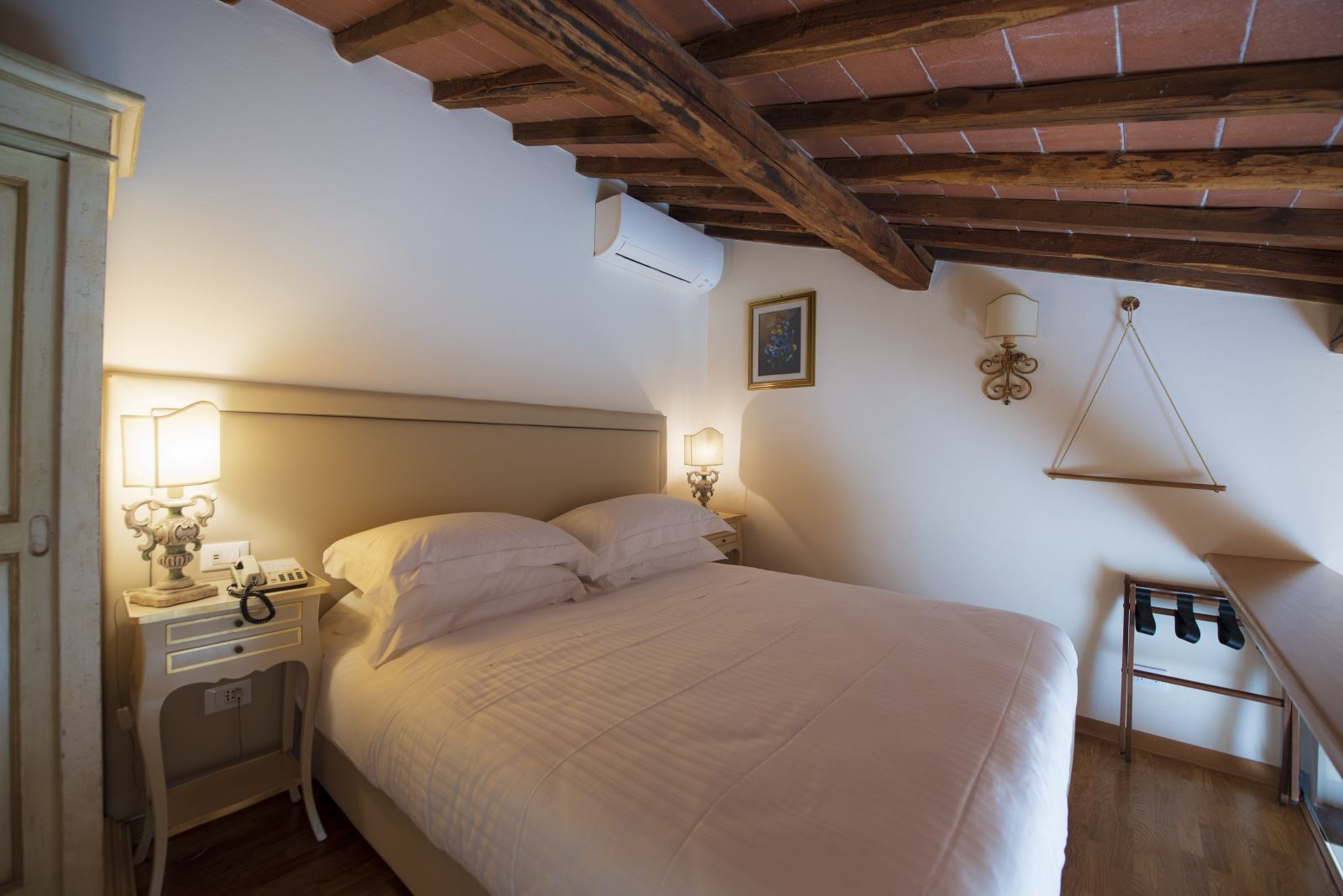 Villa Scacciapensieri Hotel Siena | Pequeña habitación doble con cama francesa ideal para quienes viajan solos o en compañía.